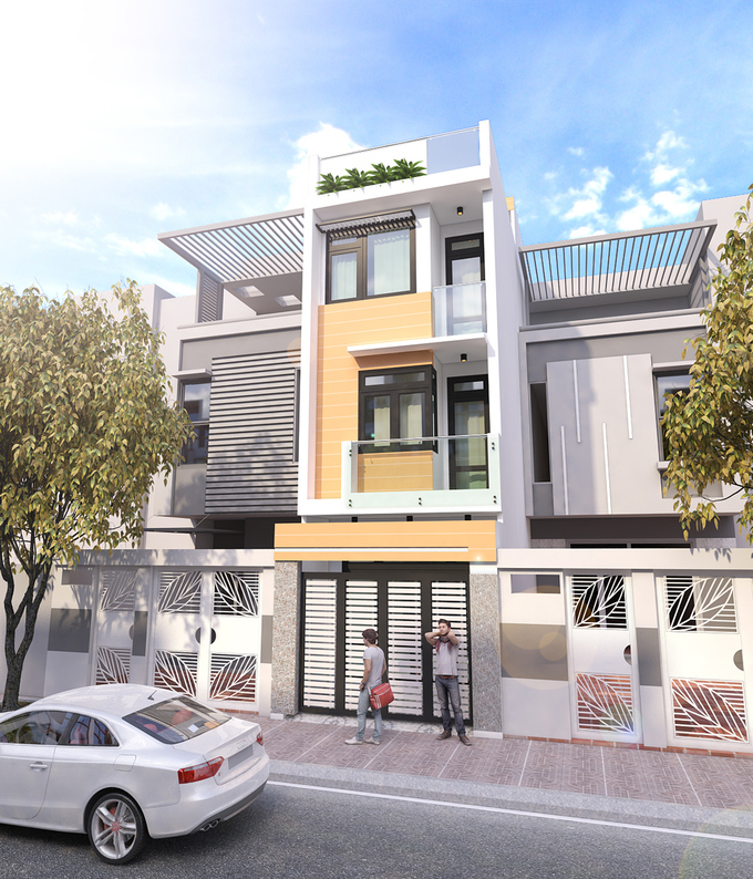 Các hình khối bên ngoài ngôi nhà thiết kế theo mảng lớn nhưng kết hợp hài hòa làm cho ngôi nhà trông rộng lớn mà không quá thô, ngược lại rất thanh thoát và nhẹ nhàng.Không gian bên trong nhà đáp ứng đầy đủ không gian sinh hoạt của một gia đình Việt Nam, bao gồm phòng khách, phòng ngủ, nhà vệ sinh, nhà bếp, phòng sinh hoạt gia đình và phòng làm việc. Tất cả được phân chia hợp lý để phù hợp với diện tích vừa phải. Phòng khách được bố trí vị trí trung tâm có không gian lớn.